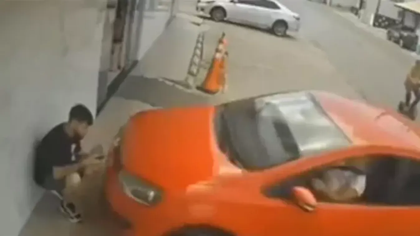 A nőnek sikerült az egyetlen akadály felé kormányoznia a kocsiját, akit a járdaszegélyre felszaladva a falhoz is préselt. Szerencsére olyan szögben, hogy a manőver nem lett végzetes, sőt: a fiatal (valószínűleg a sokk hatására is) rendkívül hanyag eleganciával, a csikket elpöccintve reagálta le a vérfagyasztó bénázást.